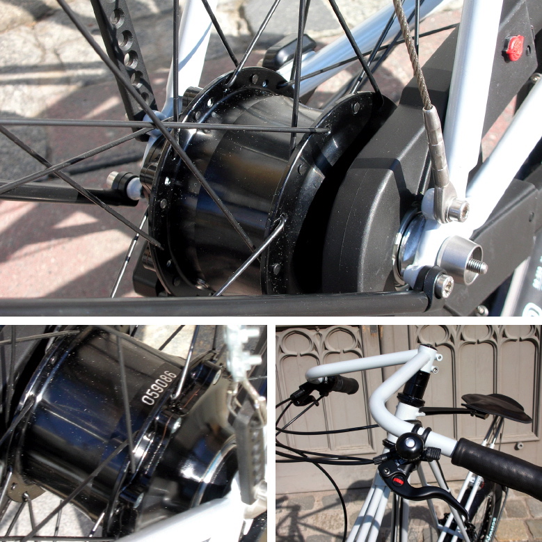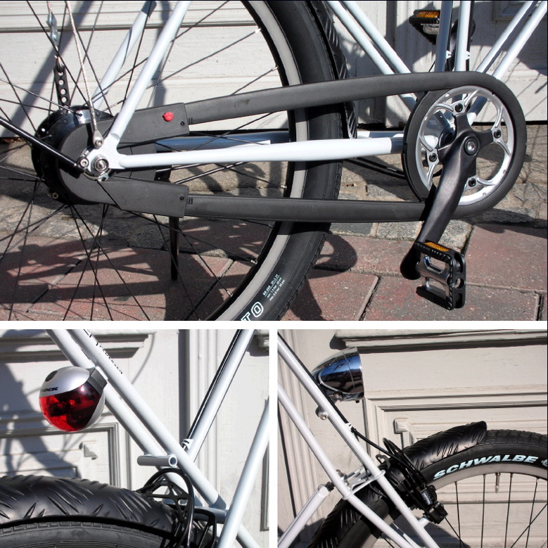 alle Metalllteile gepulvert in Farbe weiss-aluminium - Schutzbleche schwarz eloxiert